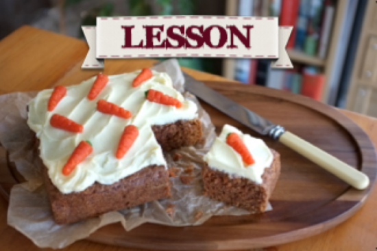I've recently been craving this traditional style of carrot cake, moist, sweet and simple to make, with lashings of cream cheese frosting and cute marzipan carrots on top. Quite different to our regular carrot cake, and of course, you'll make the carrots in class! This lesson is for up to 6 people and you will also take home the cake you make in class.