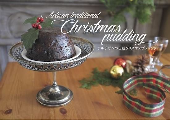 自家製サワードゥで作られたパン粉、レイズン、カレンズ、ソルタナ、干あんずとプルーンなどたっぷりのドライフルーツをブランデーに漬け、御宿の放し飼い卵、本場の味のためブラムリーアップル、もちろんオレンジピールもミックススパイスも自家製。